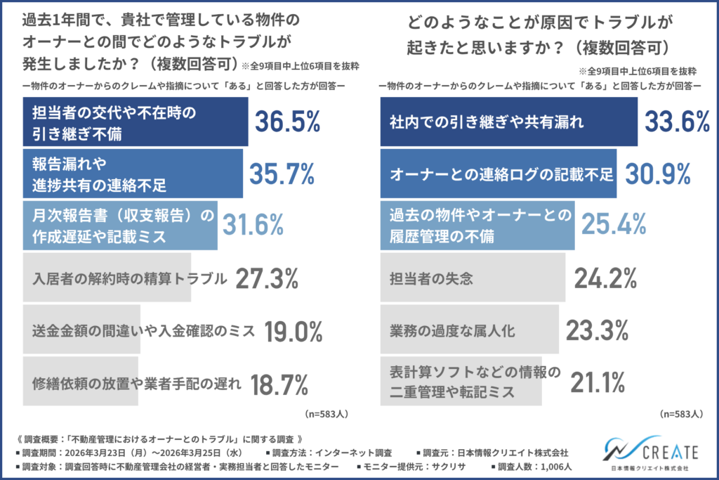 そこで今回、日本情報クリエイト株式会社は、不動産管理会社の経営者・実務担当者を対象に、「不動産管理におけるオーナーとのトラブル」に関する調査を行いました。